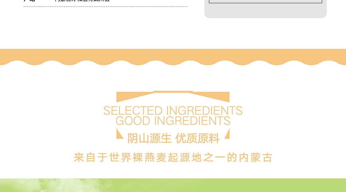 內蒙古,世界裸燕麥起源地之一;陰山源生燕麥在初出生滿足生長規(guī)律一切所需,高寒、高海拔、日照充足;遵循自然法則,靠天滋養(yǎng),自然生長;