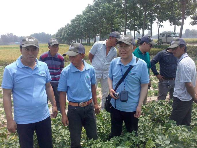 會(huì)場(chǎng)上,當(dāng)?shù)剞r(nóng)牧業(yè)局副局長、糧食局局長就此次觀摩會(huì)的開展做了重要講話。民豐種業(yè)副總經(jīng)理張文昌介紹了公司基本情況、2105年馬鈴薯行業(yè)發(fā)展?fàn)顩r及優(yōu)質(zhì)馬鈴薯種薯選擇等內(nèi)容;民豐種業(yè)質(zhì)量技術(shù)中心孟正平老師就馬鈴薯種植技術(shù)要點(diǎn)及病蟲害防治做了深入詳細(xì)的講解。隨后,于田間觀摩現(xiàn)場(chǎng),孟老師與當(dāng)?shù)胤N植戶進(jìn)行了現(xiàn)場(chǎng)互動(dòng)及答疑,在此同時(shí),我公司與當(dāng)?shù)胤止苻r(nóng)業(yè)領(lǐng)導(dǎo)就當(dāng)?shù)匚磥眈R鈴薯的發(fā)展與合作達(dá)成初步意向。
